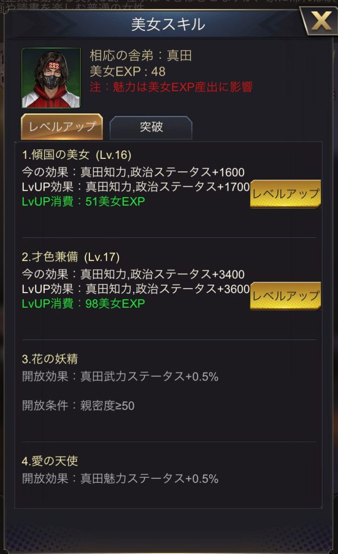 美女によるステータスの強化は強力であるため、この舎弟を育てる優先度は低めです。
