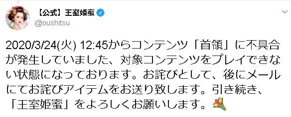 王室姫蜜では、メンテナンス終了後はほぼ100%と言っていいほどにお詫びアイテムを配布してくれます!