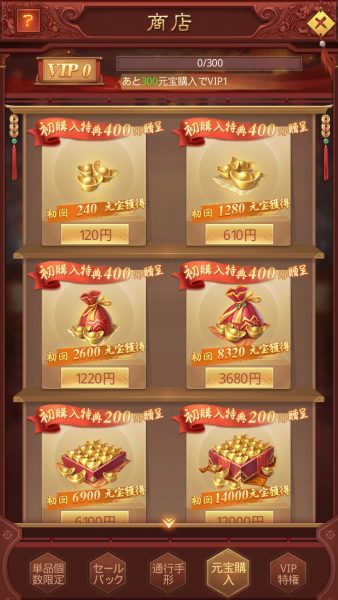 他にも期間イベントなどで必要なアイテムを購入したりするために元宝が必要となります。