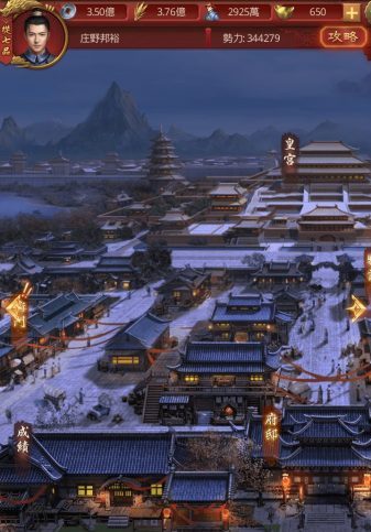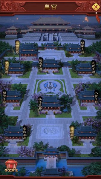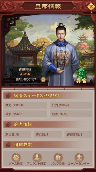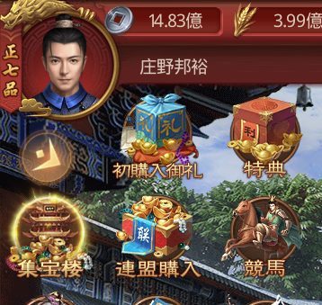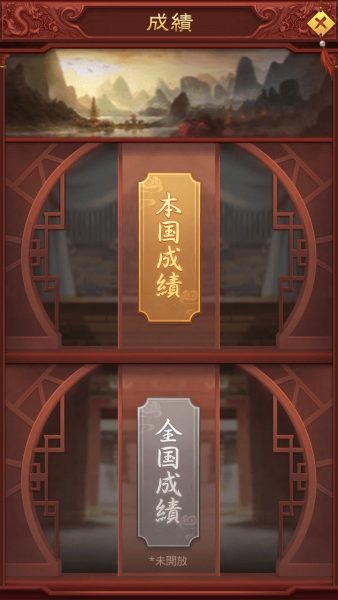ホーム画面(府邸)の左側にある「成績」と一番上にある「皇宮」を見てみましょう。