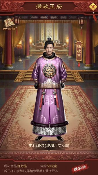 皇宮では一日一回、各王府にいる「○○王」に讃辞をすることで元宝を貰う事ができます。