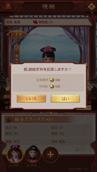 跡継ぎの枠を拡張