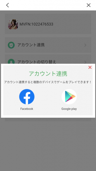 するとFacebookかGoogleplayで連携するかを選ぶことができます。