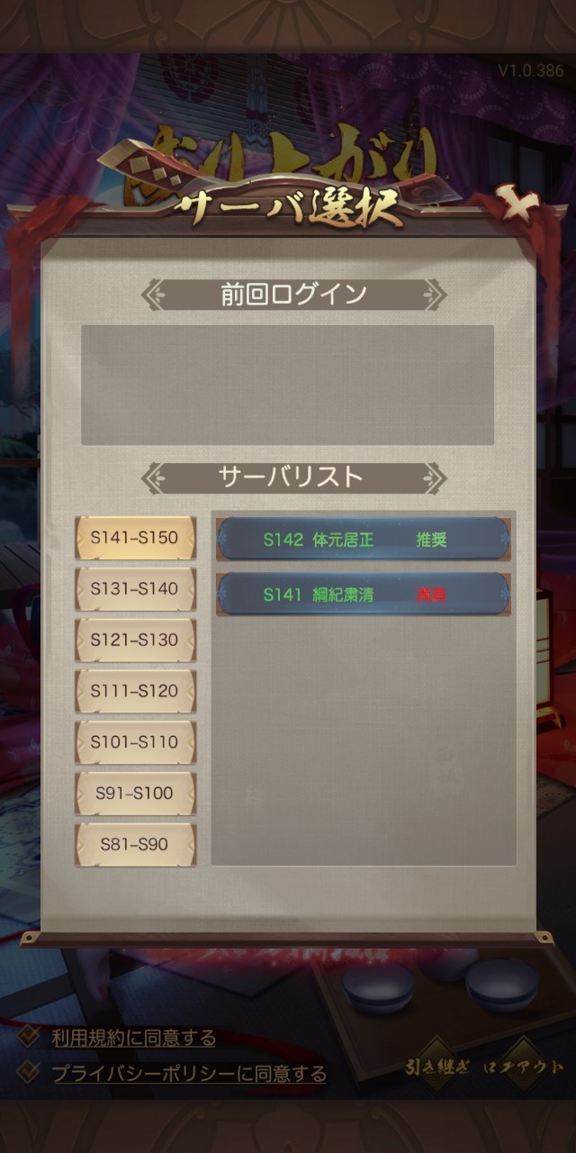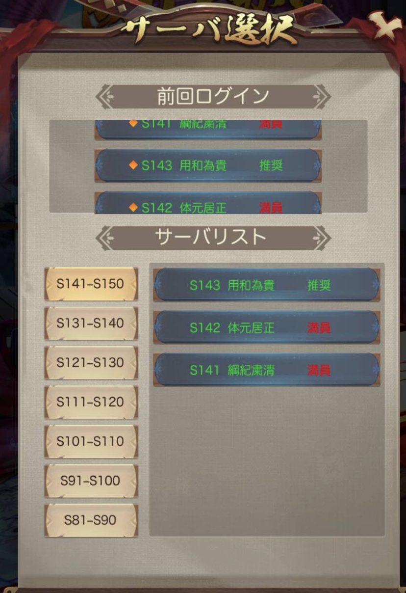 現在はS143まで設立されていて、今回新たに設立された143以外は「満員」と表示はされていますが、一応「満員」と表示されているサーバにも新規データを作成することは可能です。